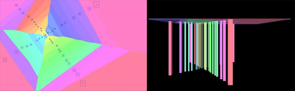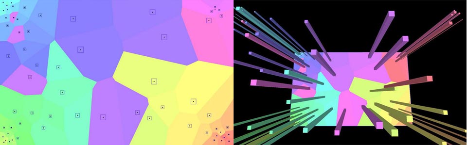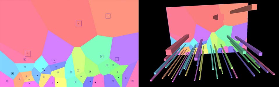 On a Voronoi tessellation plan, draw pillars with thicknesses corresponding to vertical loads.