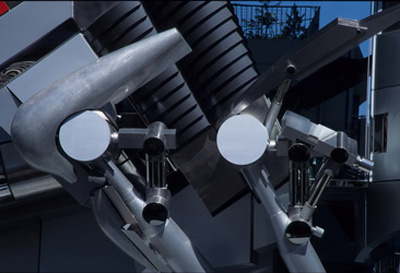 The production of exterior panels, none of which are identical, is similar to the production methods used in the automotive industry, which goes beyond the field of architecture.