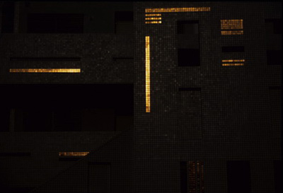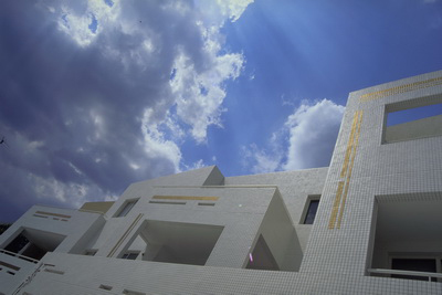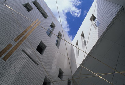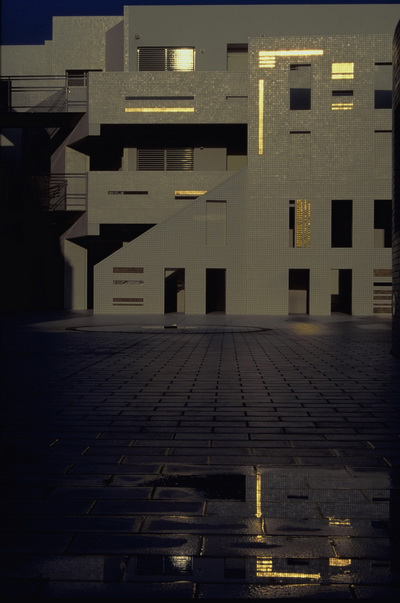 In contrast to the individually differing composition of the units, we used color and texture to give unity to the whole.