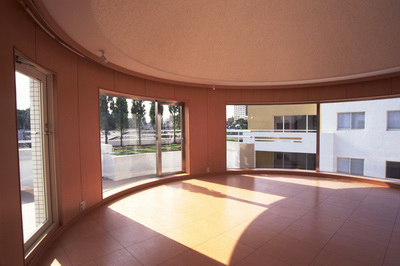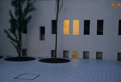 Also to correspond to the composition of varying units combined, earthy yellow was applied to two walls, one facing the inner court and the other facing the street.
