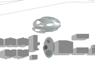 Instead of as a structure to support the upper levels, the point of contact functioned more as a bond to anchor the automatically ascending bulk of the architecture to the earth.
