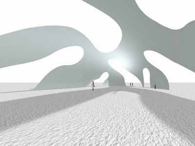 Gradually the skin of the earth rises up, until eventually it comes to form a large, free-standing "domain" with its own interior space.