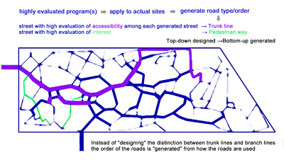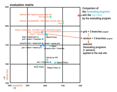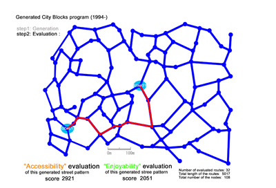 The two programs thus created are linked together. Blocks are automatically assigned scores and listed. Existing towns are evaluated too.