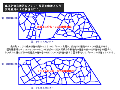Streets are usually made to run straight. There seems to be a principle at work that a straight street is better than otherwise, as evident in the cases in which a new road is planned for a place where there is nothing that stands in the way, like the MM 21 (Minato-Mirai 21, the pioneering urban restructure project near Yokohama Station), the Makuhari development project, and the "Frontier" city on the Tokyo Bay waterfront. Most older towns are not made up of straight streets laid out in a grid pattern.