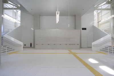 This station is configured with the external skin of the architecture enveloping the engineering structure. The architectural structure is independent from the engineering elements. This hybrid structure, as it is called, is a new configuration not found in conventional railway stations. The consequent overall form is enclosed by two screens which are independent of the engineering structure.