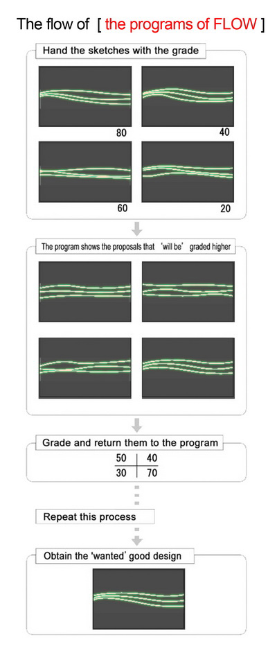 2- The program infers the designer's intent and proposes sketches which (it expects) will receive an even higher evaluation.