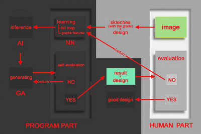 1- The designer makes several sketches and passes them on to the program after evaluating them himself.
