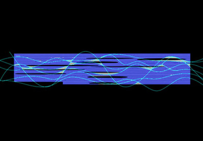 There are two types of flow. One is stratified flow, and the other is turbulent flow. Therefore, one of the screens in this station was dedicated to turbulent flow and the other to stratified flow. (Turbulent flow is used here in a metaphoric sense, since there are no actual eddies.)