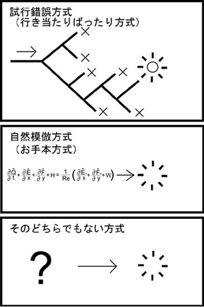 使っても使わなくても、方法の仕組みは同じである。試行錯誤方式も自然模擬も、有効な方法ではあるが、有効性に限界がある。