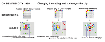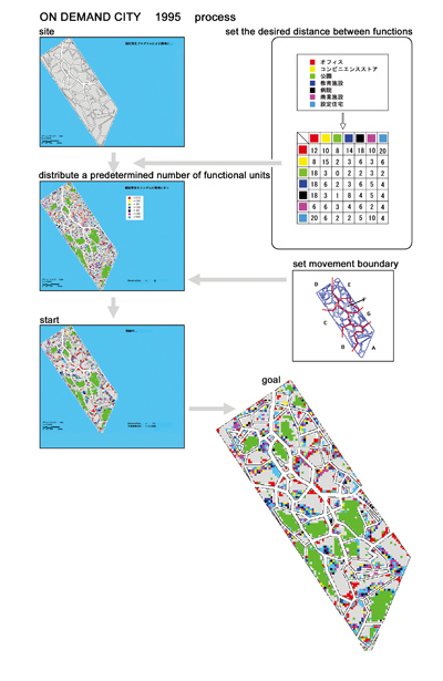 A program for assessing the locations is prepared in accordance with that matrix. Under initial conditions many functional units are arranged at random throughout the city. The units are then moved little by little and new assessments made.