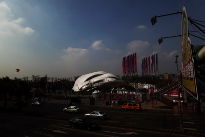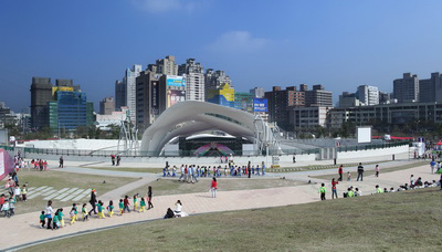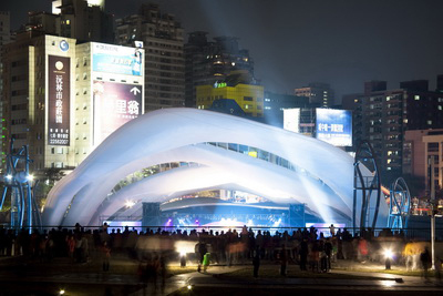 The brief for this design was a canopy, backstage rooms, and other new facilities for an existing outdoor theater in a Taichung (Taiwan) city park.
