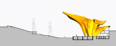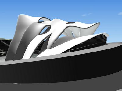 The third proposal, which was chosen for construction, is entitled "RIBBONs". It consists of five wavelike ribbons in a parallel configuration.