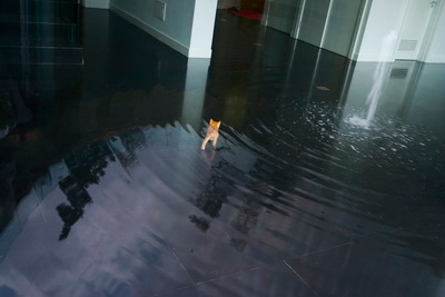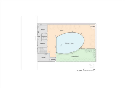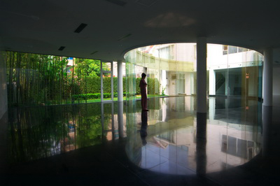 The character of the inner court changes depending on whether or not is covered with water. Without water, it is another room. With water, it is a reflecting mirror.
