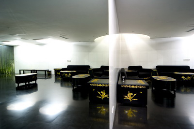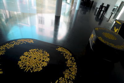 The furnishings of the first floor are black lacquer with two types of processing. One is relief work with gold dust, and the other is inlaid mother of pearl. Both are simple in form, but make special use of traditional Chinese technology and designs. Lacquer is sometimes referred to as "japan", but it is also part of traditional Chinese culture.
