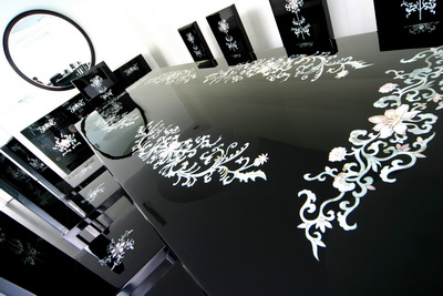 Neither lacquer nor mother of pearl inlay can be made in Shanghai today. These skills from previous generations live on today only in distant cities where there are a few craftsmen still making the same things that they made in the past. It is quite possible that before long these skills may be extinct. By giving them new form, the way may be opened for their survival into coming generations. This was also an intention here.