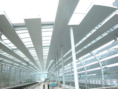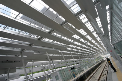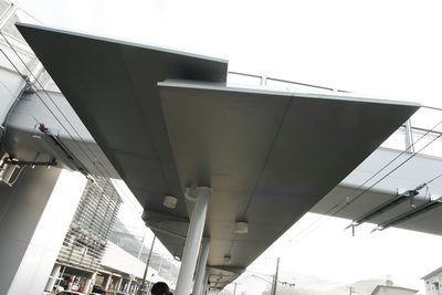 The implications extend beyond the design concept. In fact there are plans to extend the platforms after the station opens. Therefore, extensions were provided for unit pieces on the station plaza side and for the structure as a whole. Pieces which are not present when the station opens will emerge at the time of the extension.