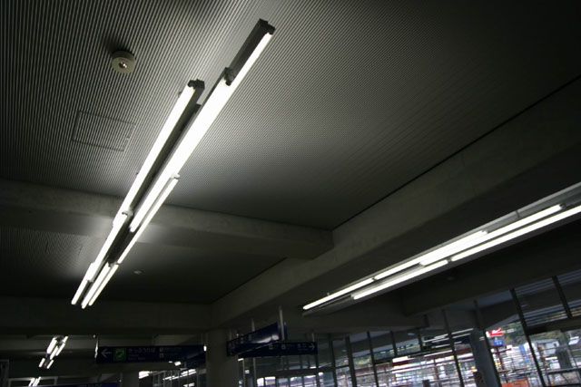 But a railway station has no doors. Trains roll through it on the platform level. The interior continues out to the exterior. Nevertheless, it is not a completely open space. Platforms need to provide protection from rain, wind, and sunshine, and to prevent noise from escaping outside as the trains pass through. Railway stations seem to be open, but are actually closed. They seem to be closed, but are actually open. They are special spaces, unlike the closed package of normal architecture.