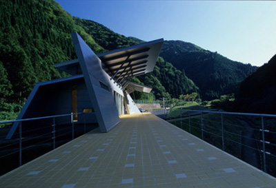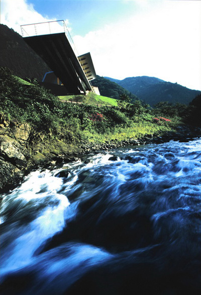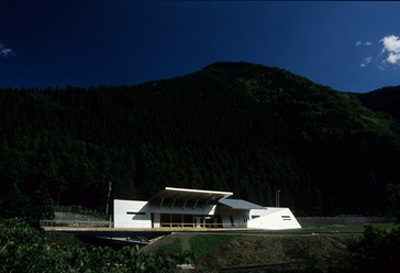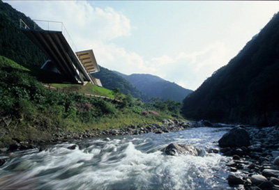 Within such an environment, this architecture was planned as a location for holding small concerts, festivals and meetings for the villagers, and also as an information center for people visiting the village. The first item considered was how to enable people to experience the clear river, where sweetfish can be caught, and the deep green mountains in the most beautiful way.