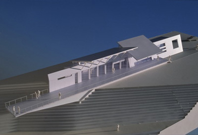 Art was introduced as the other factor to combine with the architecture and landscape. The piece introduced is an environmental sculpture named "Touch of Wind / FIBER WAVE" which uses 150 four-meter high carbon fiber rods.